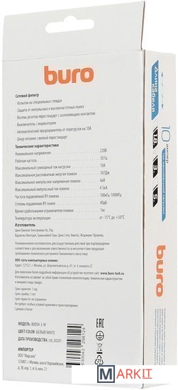 Сетевой фильтр Buro 800SH-3-W Код: 133095